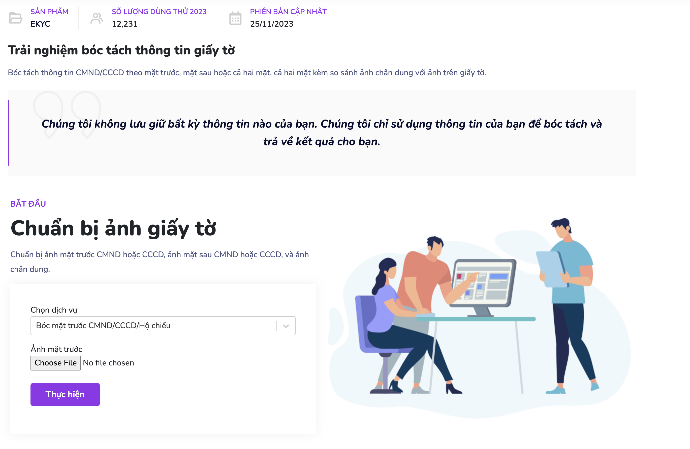 eKYC cung cấp qua tập API để ứng dụng dùng tích hợp (ví dụ ứng dụng di động native hoặc Flutter/React). Có thể bổ sung bảng điều khiển (console) theo từng mô hình triển khai (cloud hoặc cài đặt tại khách hàng) để vận hành, giám sát lỗi và cấp quota.